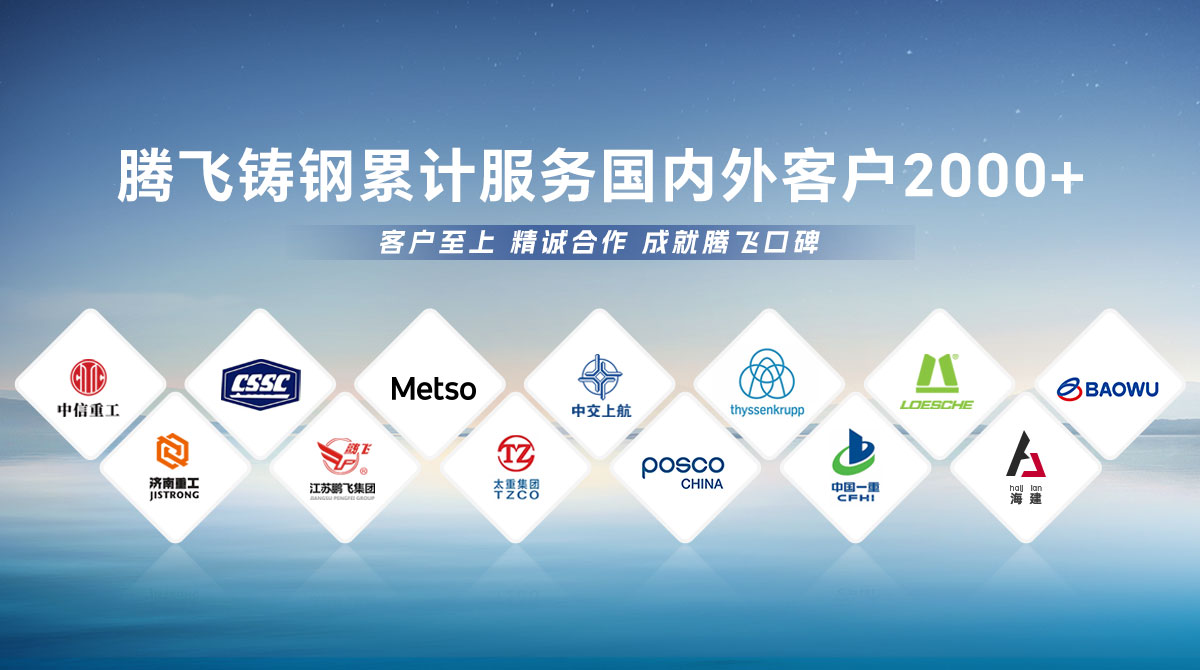 騰飛鑄鋼成立于2006年,位于全國鑄造基地河南省新鄉(xiāng)市,擁有員工300余人,是一家從事150噸以下碳鋼、低合金鋼、不銹鋼鑄鋼件研發(fā)、制造、服務(wù)為一體的國家高新技術(shù)企業(yè)?! 」就ㄟ^了ISO9001國際質(zhì)量管理體系認(rèn)證,擁有2項(xiàng)發(fā)明專 利,2項(xiàng)河南省科技成果、25項(xiàng)實(shí)用新型技術(shù),通過了“環(huán)??冃гu(píng)級(jí)B級(jí)企業(yè)”驗(yàn)收,先后榮獲“河南省鑄造行業(yè)綠色發(fā)展企業(yè)”、 “河南省科技型中小企業(yè)”、“河南省專精特新中小企業(yè)”等榮譽(yù)稱號(hào)?! 」緭碛?臺(tái)25噸電爐,4臺(tái)大型天燃?xì)鉄崽幚頎t、10米回旋自動(dòng)拋丸機(jī)一臺(tái), φ8m數(shù)控立車、φ10m數(shù)控滾齒機(jī)等各類高精裝備100余臺(tái)套,年產(chǎn)能3萬余噸,能為客戶提供從產(chǎn)品設(shè)計(jì)、木模加工、大型鑄造、大型加工一站式服務(wù),產(chǎn)品廣泛應(yīng)用于建材、冶金、鍛壓、冶金、水工、路橋、化工等多個(gè)重型行業(yè)。  長期服務(wù)于中信重工、中船重工、美卓、上海中交、萊歇、寶武、濟(jì)南重工等全球知名企業(yè),在行業(yè)內(nèi)擁有較高的市場知名度和美譽(yù)度。